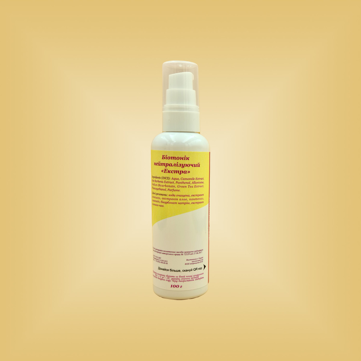 Склад: вода очищена, екстракт ромашки, екстракт алое, пантенол, алантоїн, бікарбонат натрію, екстракт зеленого чаю.