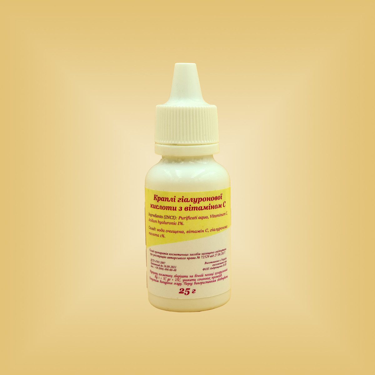 Склад: вода очищена, вітамін С, гіалуронова кислота 1,5%.