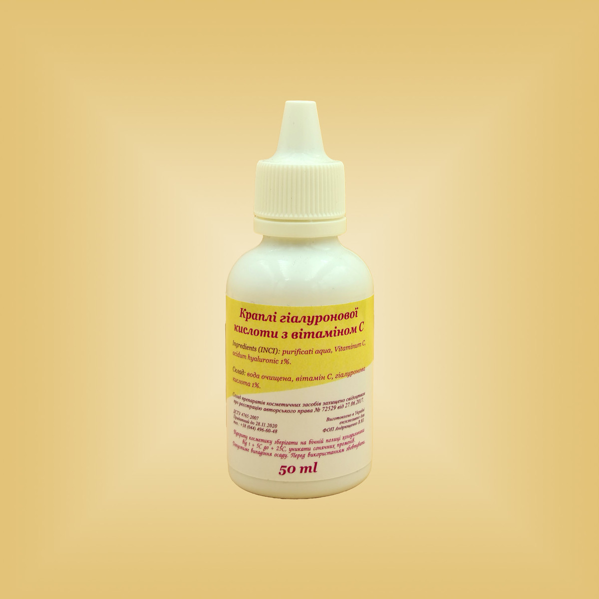 Склад: вода очищена, вітамін С, гіалуронова кислота 1,5%.