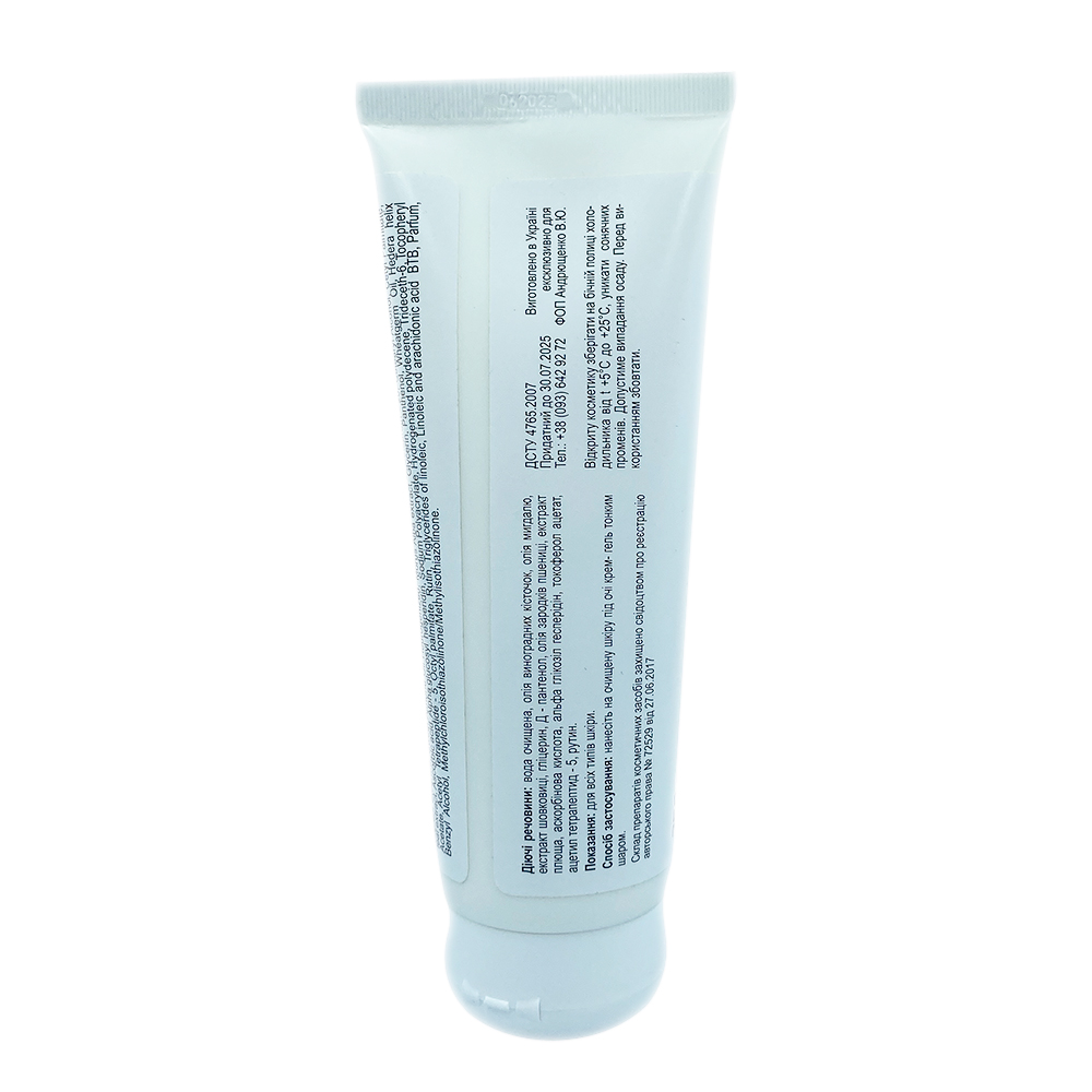 Склад: вода очищена, олія виноградних кісточок, олія мигдалю, екстракт шовковиці, гліцерин, Д-пантенол, олія зародків пшениці, екстракт плюща, аскорбінова