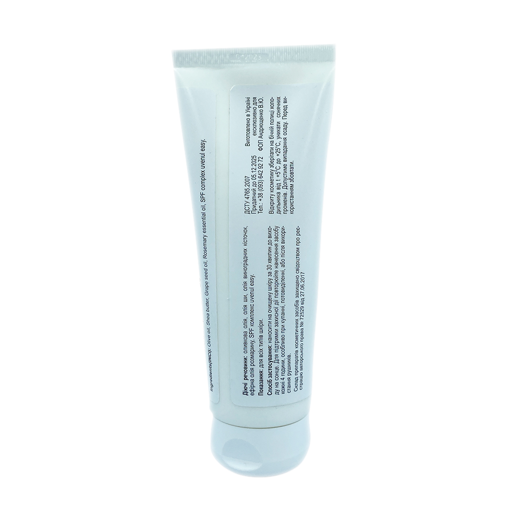 Склад: оливкова олія, олія ши, олія виноградних кісточок, ефірна олія розмарину, SPF комплекс uvenul easy.