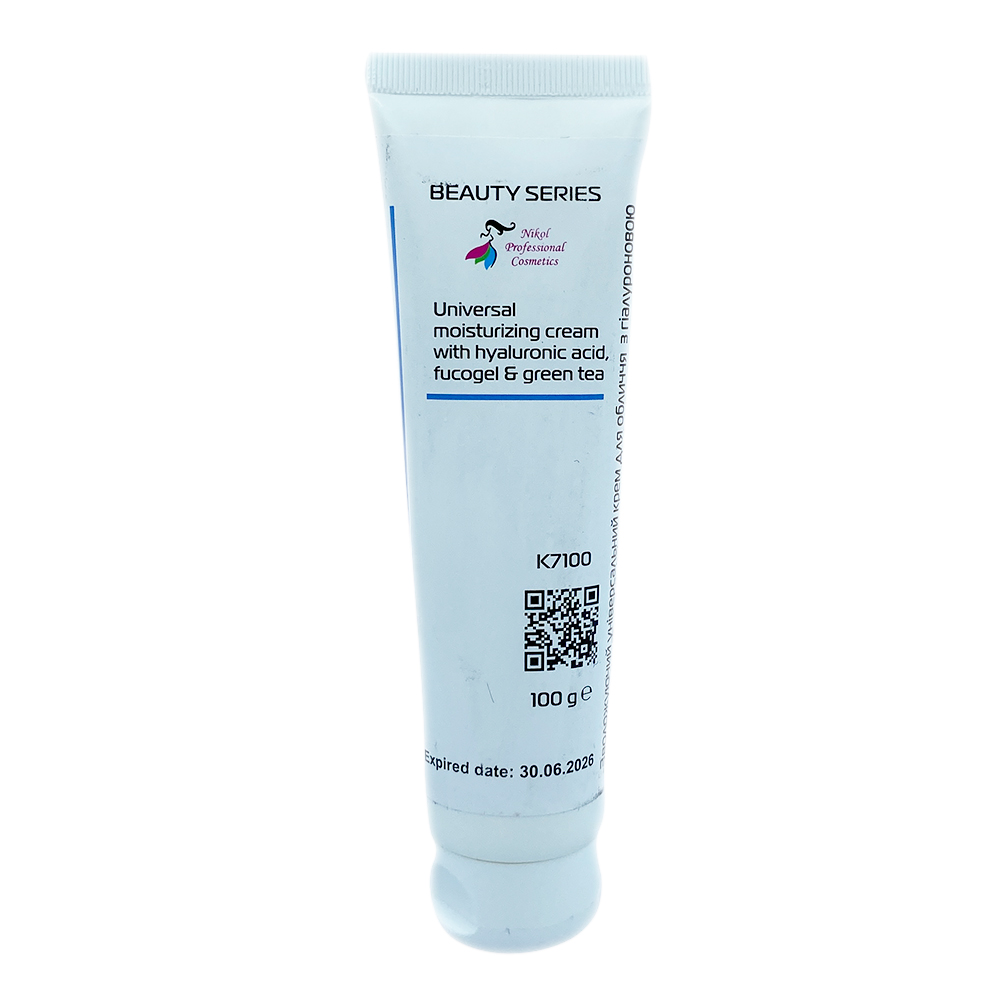 Купити Зволожуючий універсальний крем для обличчя з гіалуроновою кислотою, фукогелем і екстрактом зеленого чаю Nikol Professional Cosmetics, 100 г, ви зможете у нашому інтернет-магазині limonad з доставкою по всій Україні в тому числі і Київ, Дніпро, Одеса, Харків, Запоріжжя, Одеса, Львів та багато інших населених пунктів.