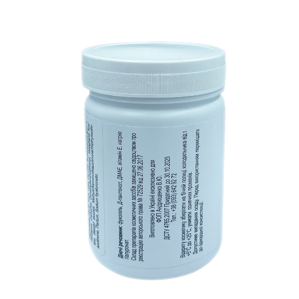 Склад: фукогель, Д-пантенол, ДМАЕ, вітамін Е, натрію гіалуронат