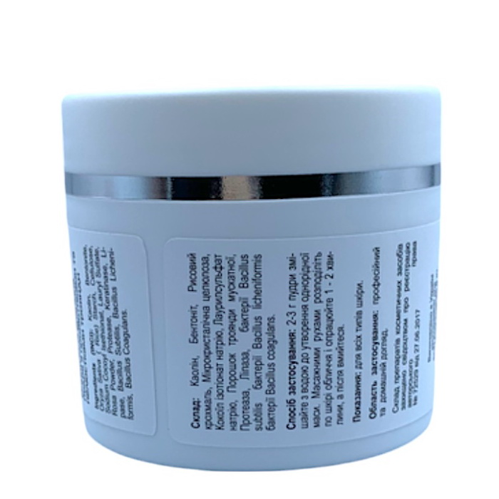 Склад: Каолін, Бентоніт, Рисовий крахмаль, Мікрокристалічна целюлоза, Кокоїл ізотіонат натрію, Лаурилсульфат натрію, Порошок мускатної рози, Протеаза, Ліпаза, бактерії Bacillus subtilis, бактерії Bacillus licheiformans, бактерії Bacillus licheniformis.