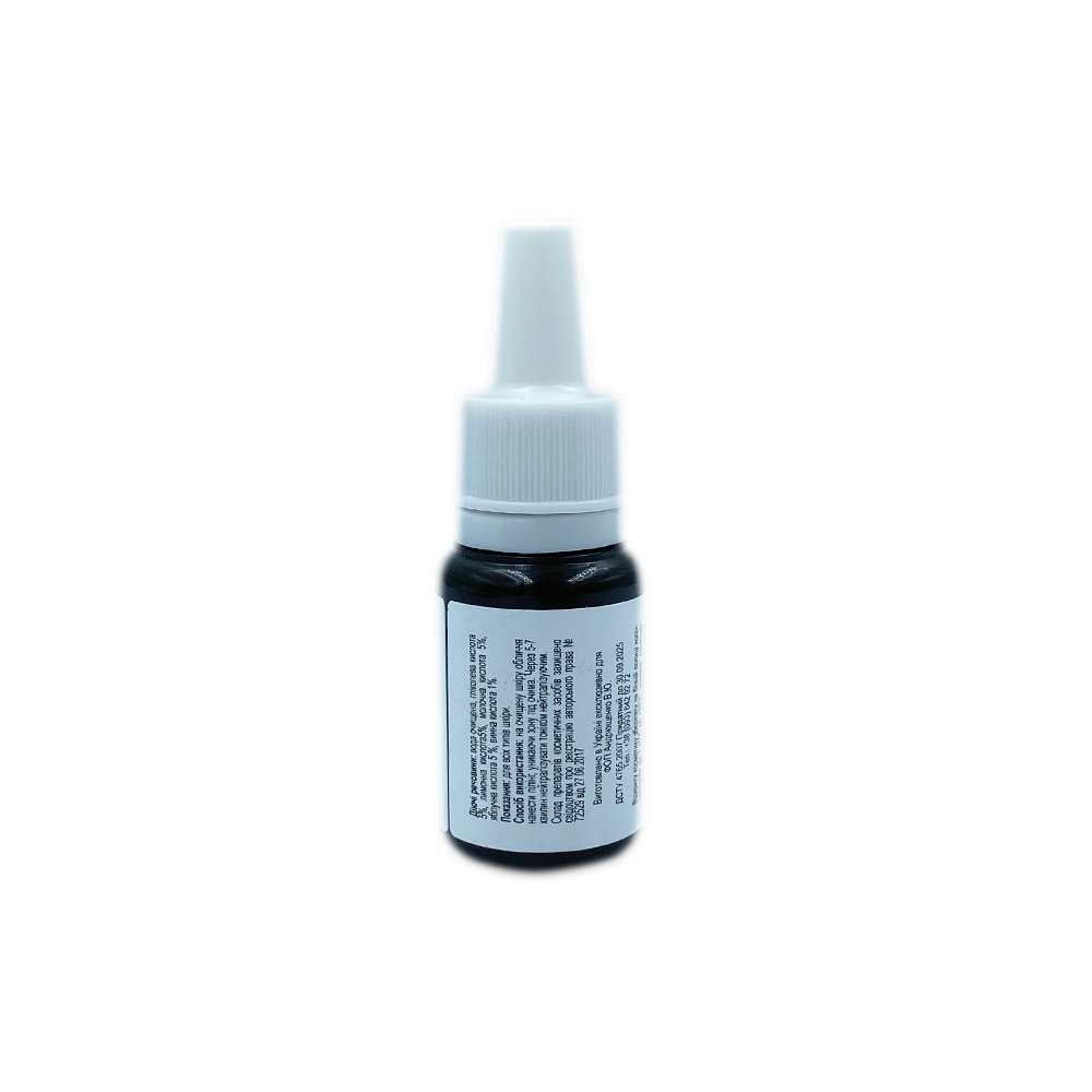 Склад: вода очищена, гліколева кислота 5%, лимонна кислота 5%, молочна кислота 5%, яблучна кислота 5%, винна кислота 1%.