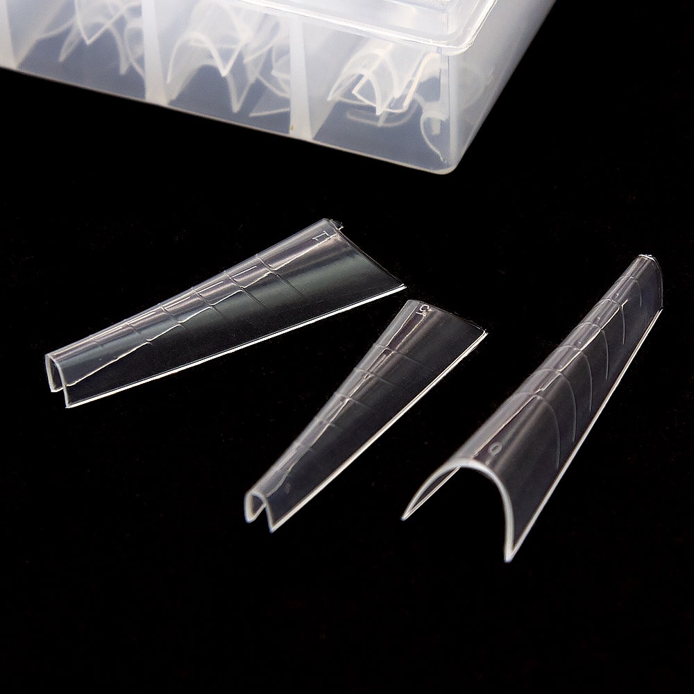 Верхние формы для наращивания ногтей SaMi Professional представляют собой разновидность пластиковых типов, но со специальными отличиями. Они оптимально гибкие, что позволяет после моделирования легко отделить форму от созданного искусственного ноготка. Материал, из которого сделаны формы, прозрачный, что очень удобно для контроля за процессом наращивания и позволяет исправить ошибку, если под формой имеются воздушные полости, пузырьки. Преимуществом верхних форм также является и то, что созданный ноготь получается идеально гладким и его поверхность не нуждается в коррекции. В упаковке представлено 12 разных размеров по 10 шт. каждого для оптимального подбора в зависимости от особенностей натуральных ногтей и ногтевого ложа.