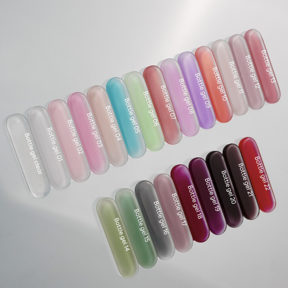 NAILSOFTHEDAY Bottle gel — надміцні гелі із функцією самовирівнювання чудово підходять для зміцнення нігтів, швидкого ремонту тріщин та реставрації кутів. Консистенція середня, комфортні у роботі, швидко просихають, а головне – не містять токсичних речовин.