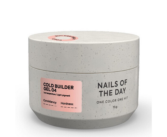 NAILSOFTHEDAY Cold Builder Gel LOW TEMPERATURE / LIGHT PIGMENT — нова серія легкопігментованих гелів для нарощування нігтів зі зниженим тепловим ефектом, яка забезпечить натуральний ефект вигляду змодельованих нігтів завдяки своїй полегшеній пігментації, а низькотемпературна формула створить комфорт у роботі, що дозволить виконувати нарощування навіть на виснажених та пошкоджених нігтях клієнтів, які відчувають печіння під час процедури. Цим гелем можна працювати без пониження потужності лампи.