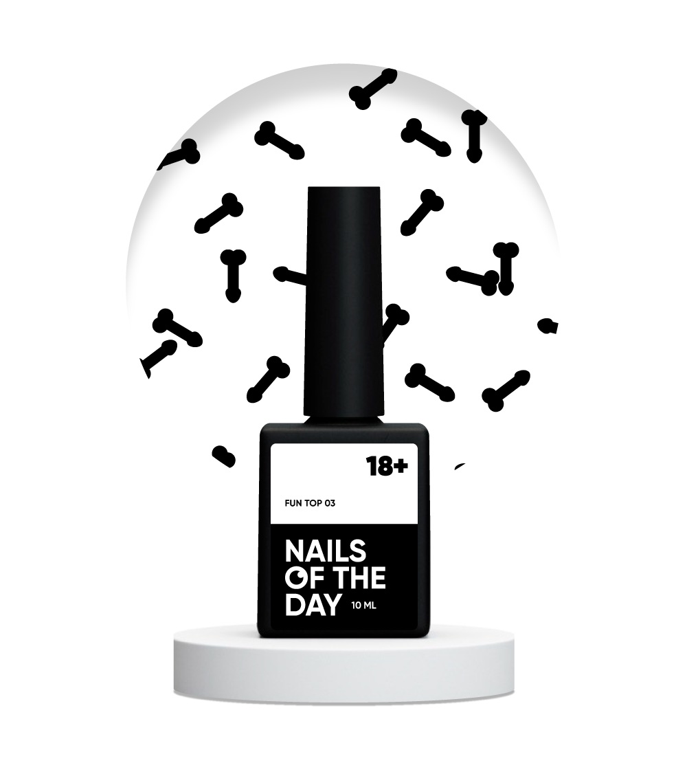Nails of the Day FUN! top 03 – прозорий топ без липкого шару з чорним арт-декором, 10 мл