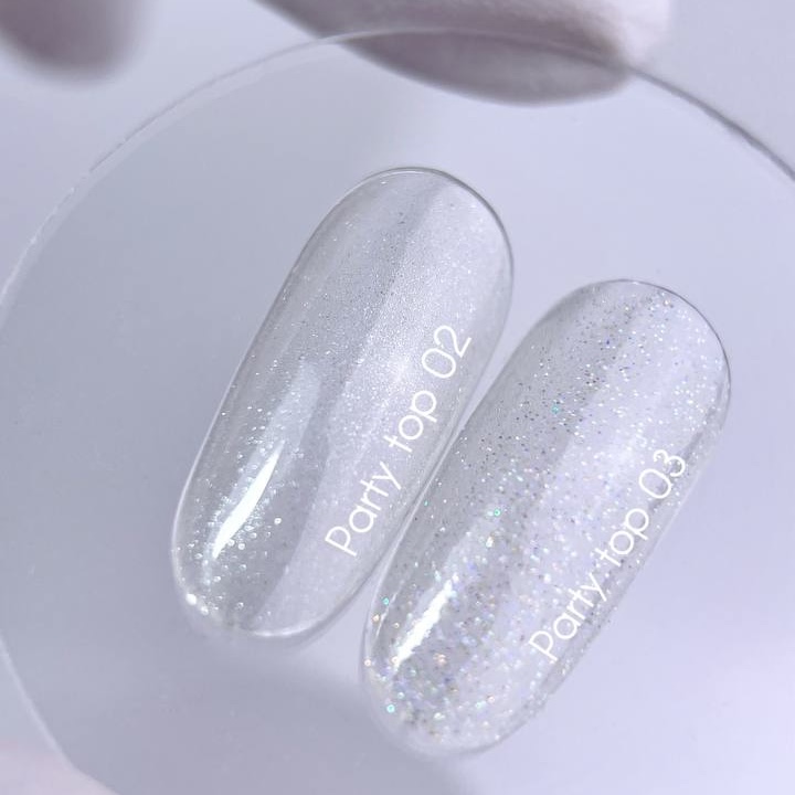 NAILSOFTHEDAY Party top — глянсовий топ з мерехтливими срібними блискітками, що неймовірно переливаються, без липкого шару. Завдяки нашій унікальній формулі відмінно вирівнюється та щільно вкривають нігтьову пластину. Запобігають сколам та подряпинам. Мають середню консистенцію.