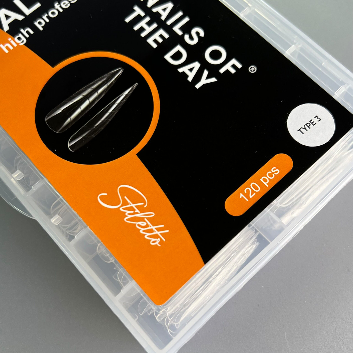 Type 3 — стилет/мигдаль, 120 штук. У наборі 120 штук — 12 розмірів, що дозволяє легко підібрати необхідну форму для будь-якої нігтьової пластини.