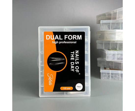 Nails of the Day Dual Form — призначені для нарощування нігтів з мінімальним обпилюванням. Арка верхніх форми дозволяє моделювати максимально природні форми нігтів, що імітують натуральну нігтьову пластину.