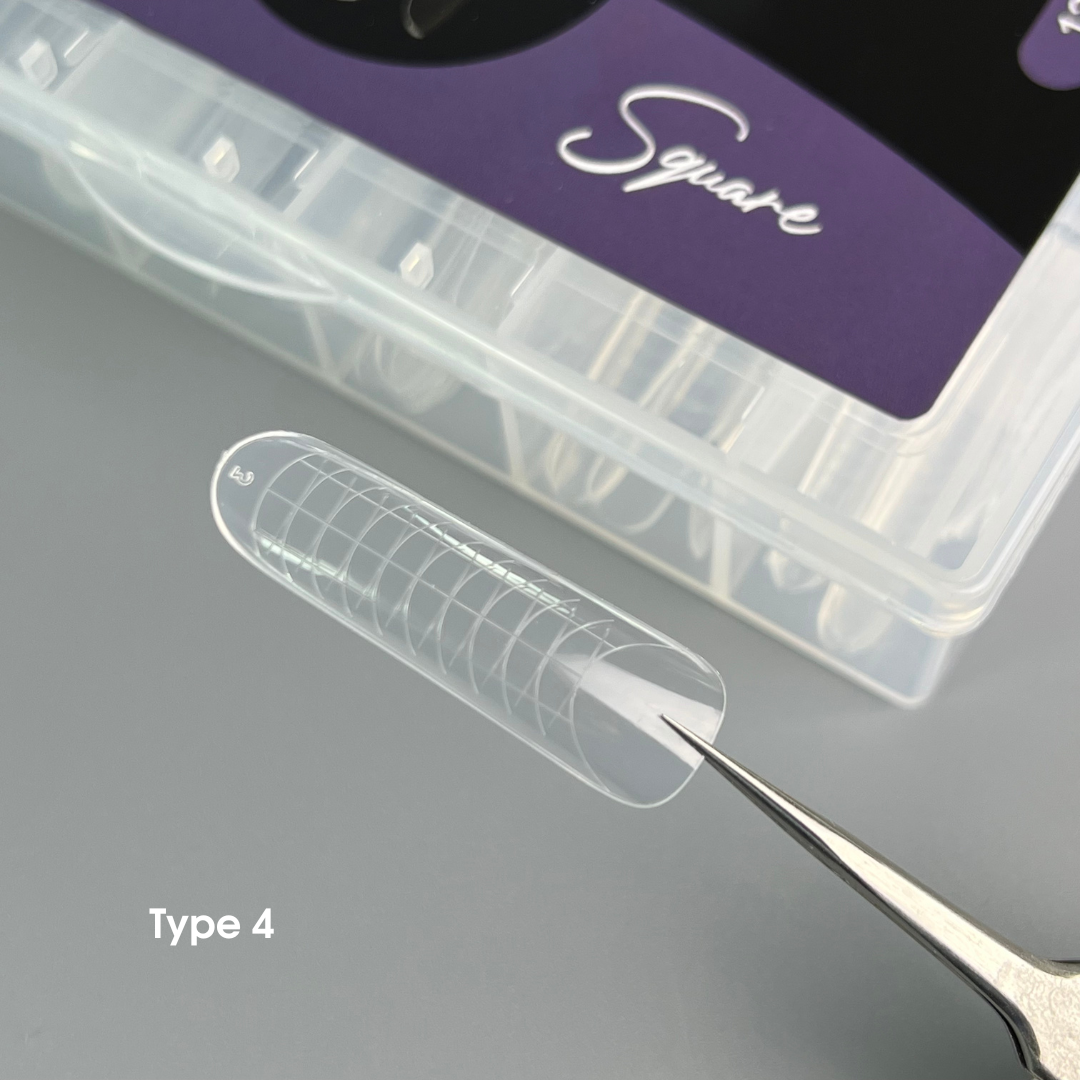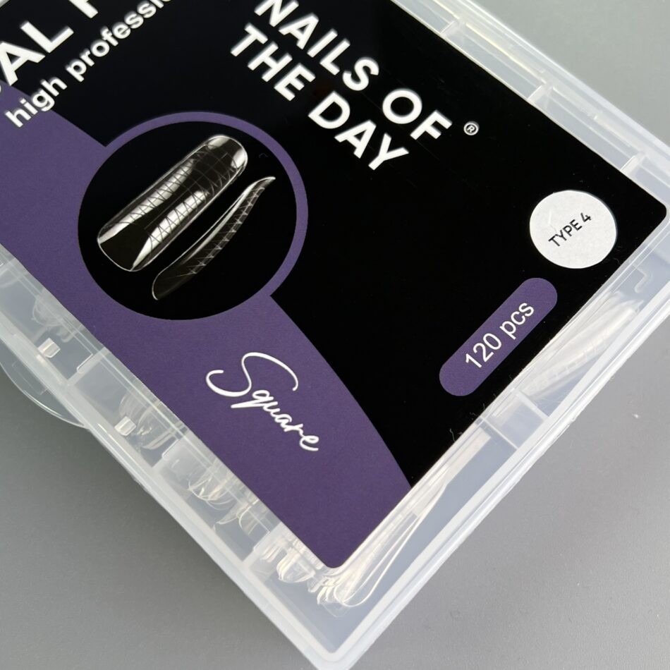 Type 4 — скво квадрат, 120 штук. У наборі 120 штук — 12 розмірів, що дозволяє легко підібрати необхідну форму для будь-якої нігтьової пластини.