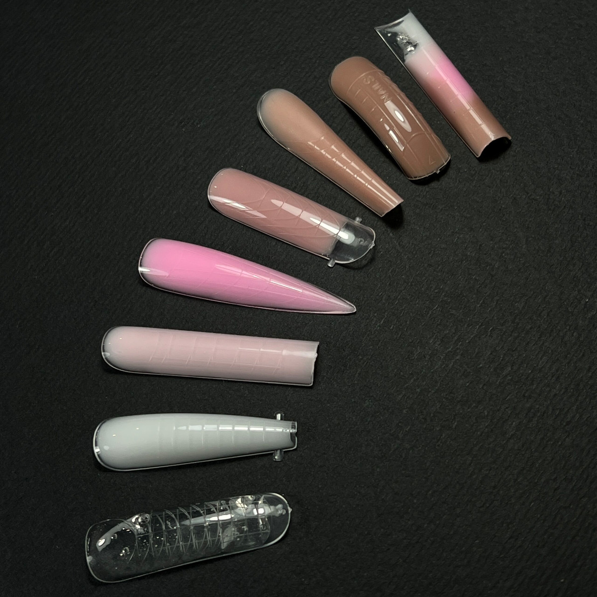Форми пружні, добре тримають форму і знімаються легко після полімеризації з будь-яким матеріалом, вони не гнуться при підтисканні архітектури пінцетом або спеціальними тонкогубцями. Підходить для використання з матеріалами різного типу: полі-гель, акрил-гель, білдер-гелі та гелі-желе. Удосконалена форма створить архітектуру нігтів без зайвих зусиль навіть для початківців у моделюванні.