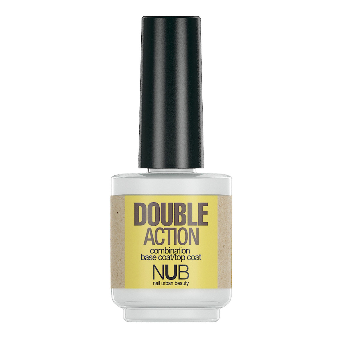 Практично та економно! Заощади свої гроші та місце на полиці! Комбінована основа-закріплювач для лаку 2в1 NUB Double Action має бути під рукою як у любителів наводити красу на нігтях, так і у nail-професіоналів. Тому що цей засіб має вагому перевагу – воно застосовується і як основа, забезпечуючи чудову адгезію з пластиною нігтя, і як закріплювач, надаючи нігтьовому покриттю красивий глянсовий блиск і зберігаючи його яскравість і довговічність.