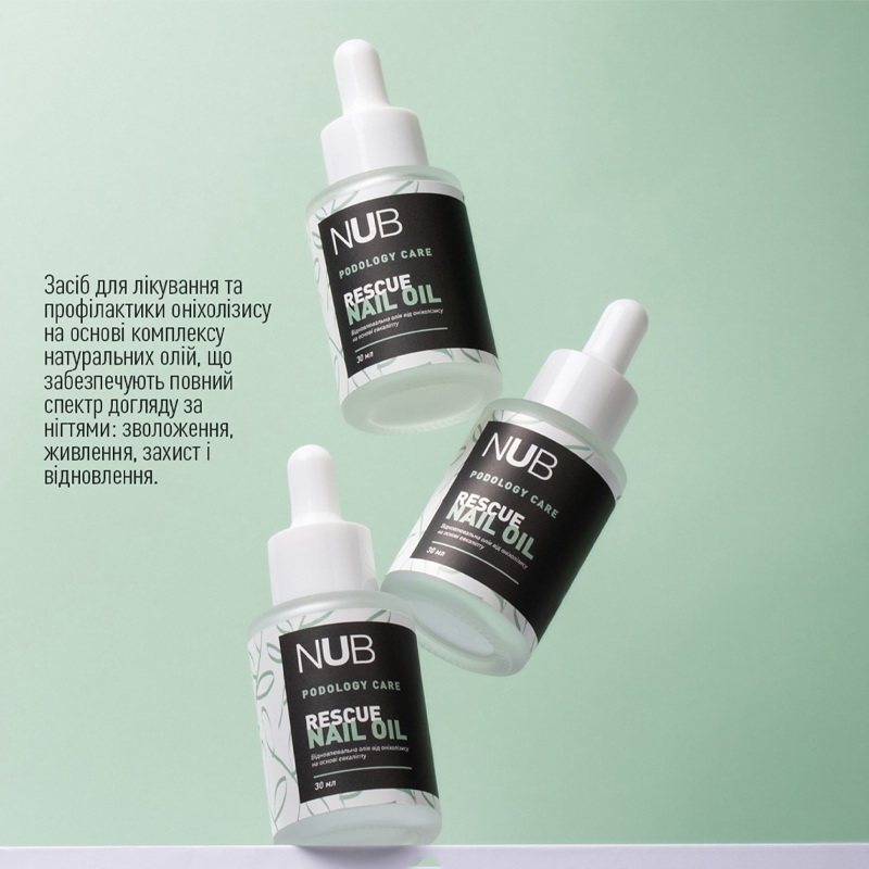 NUB Podology Care Rescue Nail Oil - олійка для нігтів та шкіри, розроблена з метою лікування та профілактики оніхолізису. Містить активний комплекс натуральних олій, які повністю закривають потреби шкірного покриву та нігтьових пластин у зволоженні, живленні, захисті та відновленні. Основний діючий компонент засобу - олія евкаліпту, знаменита своїми потужними антисептичними та протизапальними властивостями, здатністю ефективно боротися з інфекціями та запаленнями, які є частими супутниками оніхолізису. Прискорює загоєння та зміцнює нігтьові пластини.