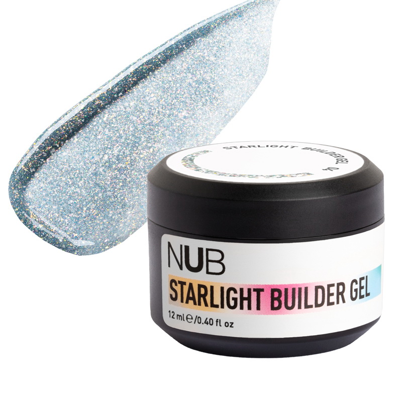 NUB Starlight Builder Gel - моделюючий гель, який має світловідбивний ефект і містить красивий кольоровий пігмент. Є сучасним матеріалом з високою міцністю та розкішним сяйвом. Завдяки спеціальним світловідбивним частинкам робить нігті яскравими, наповнює манікюр неймовірними глітерними переливами, які максимально проявляються у променях світла.