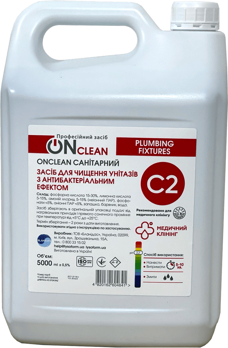 Купити ONсlean Plumbing Fixtures 5000 мл - засіб для очищення санітарно-технічного обладнання, Blanidas, ви зможете у нашому інтернет-магазині limonad з доставкою по всій Україні в тому числі і Київ, Дніпро, Одеса, Харків, Запоріжжя, Одеса, Львів та багато інших населених пунктів.