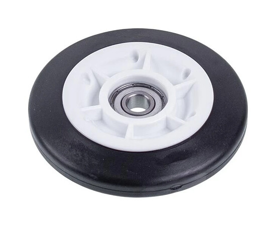 Ролик допомагає барабану обертатися плавно і без зайвого опору, що зменшує навантаження на двигун та інші механізми сушильної машини, подовжуючи термін їхньої служби.