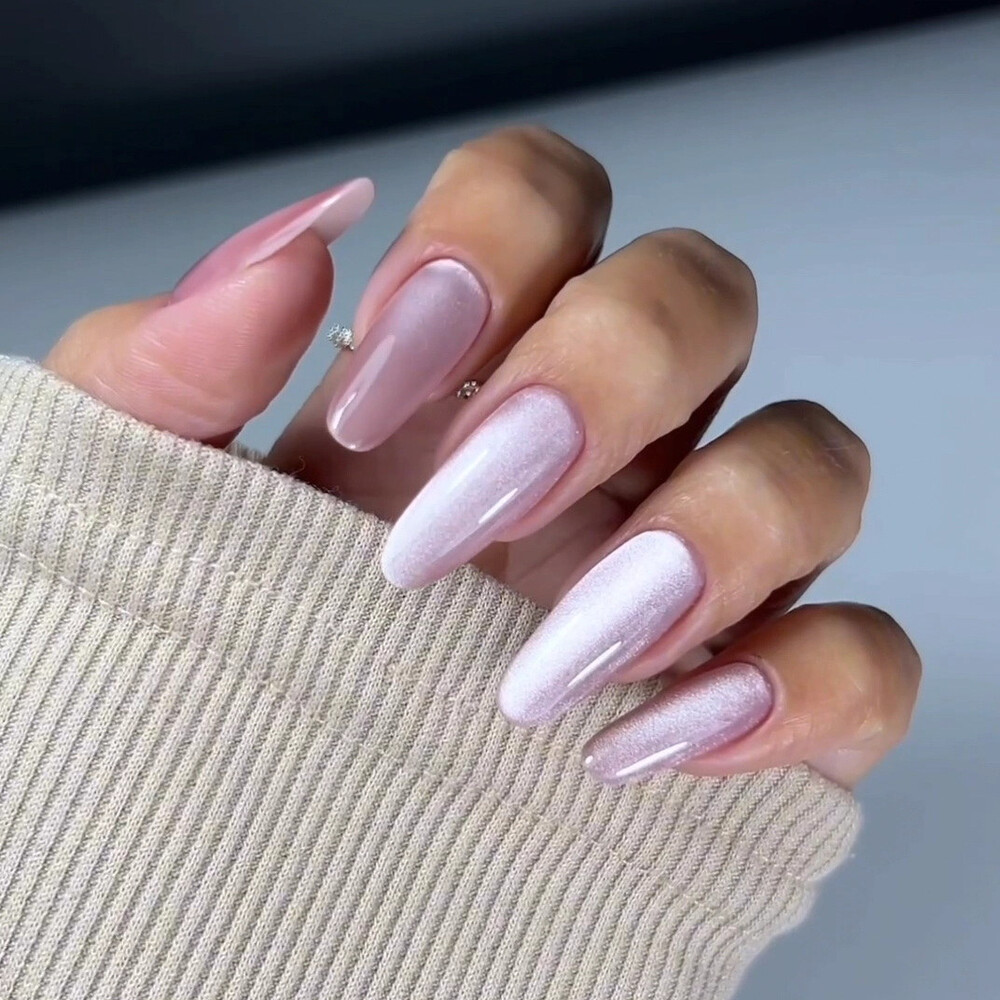 - Нанести на нігті гель-лак Oxxi котяче око, запечатати вільний край. Перед полімеризацією кожного шару піднести магніт до гель-лаку на відстань 3 мм і тримати його протягом 10-15 секунд. Полімеризувати кожен шар 2 хвилини в УФ лампі або 30 секунд LED лампи. При необхідності слід нанести другий шар гель-лаку, також здійснити полімеризацію.