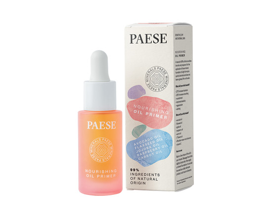 Поживна олія-база під макіяж для сухої шкіри Nourishing MakeUp Oil Minerals Paese - це 99% натуральна олія для макіяжу, яка доглядає шкіру