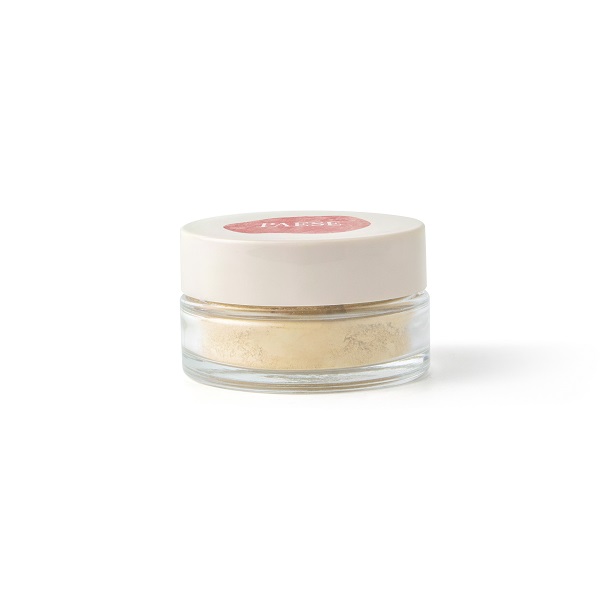 - Пудра упакована у скляну банку, обладнану спеціальним ситечком для зручного використання.