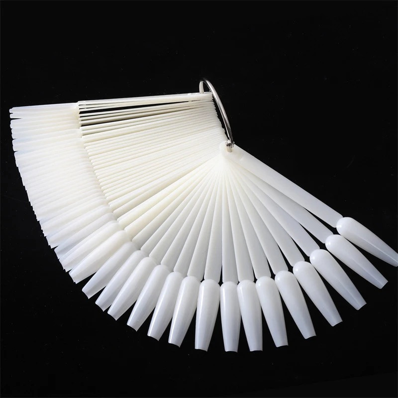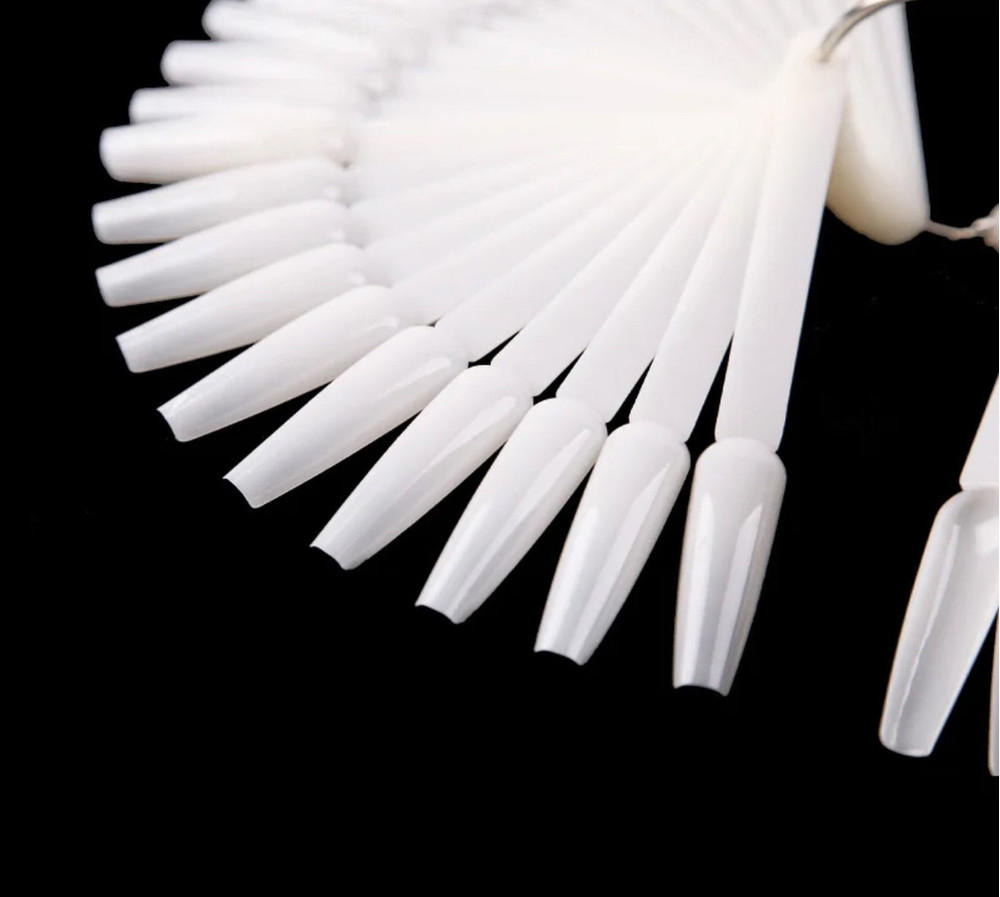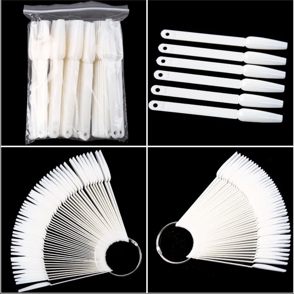 У наборі веєри - палітри йде 50 типс, які скріплені за допомогою металевого кільця, що дозволяє тримати всі типси в одному місці, але при цьому їх зручно показувати клієнту.