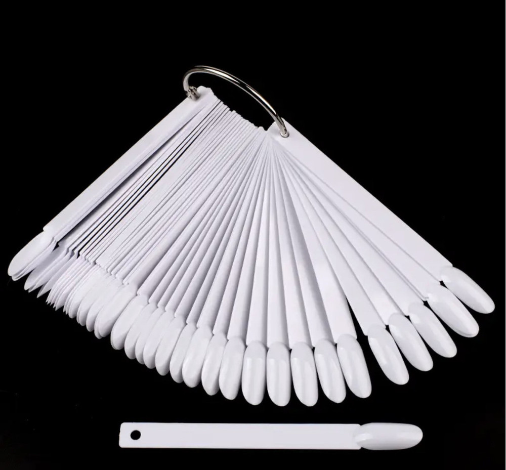 Палітра - віяло на кільці (50 типс, 12).3 см) "Миндаль" для демонстрації гель-лаків та дизайнів. Білий