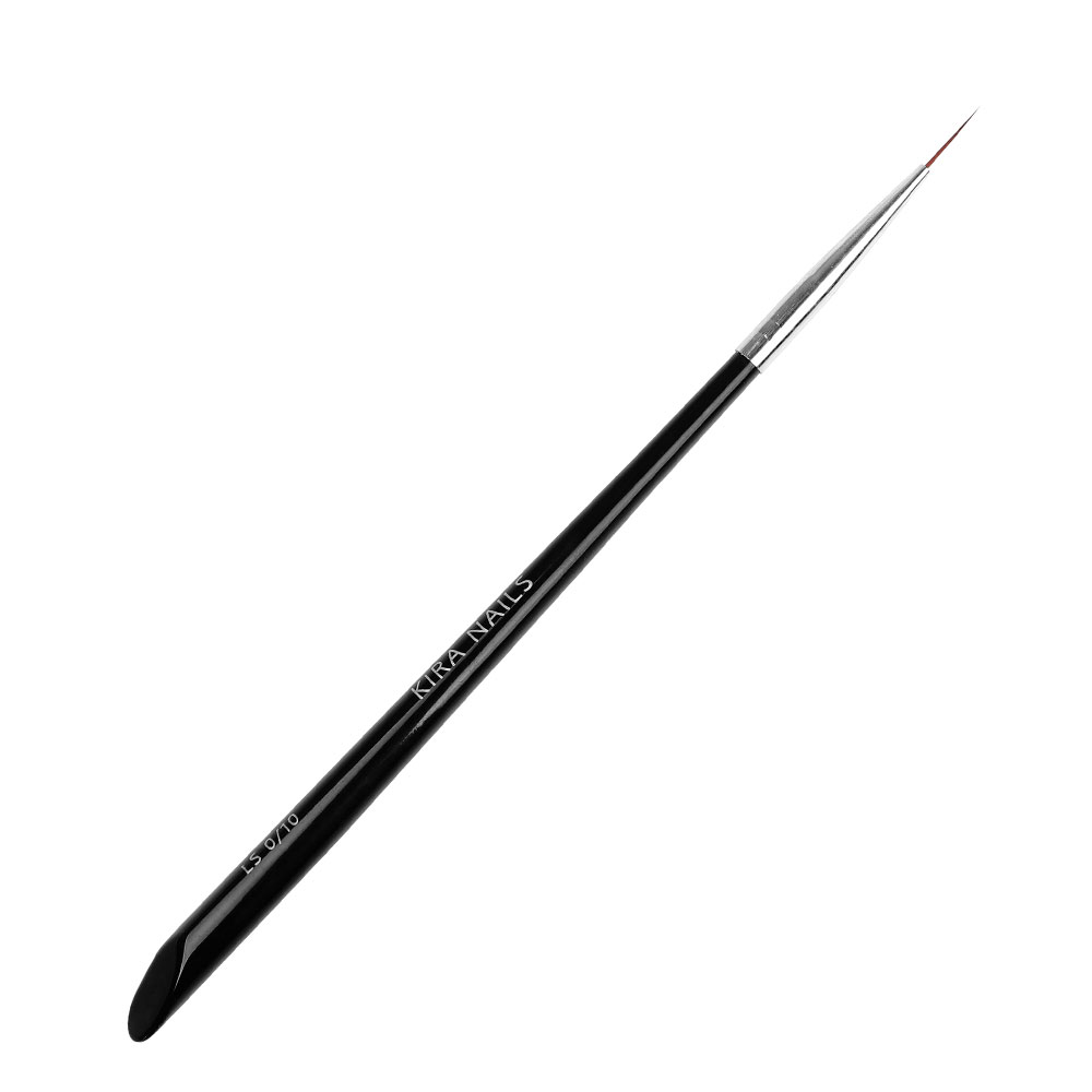 Пензлик Kira Nails Liner зі штучного матеріалу. Використовується для тонких ліній, промальовки кольору, бази, топу під кутикулу, для малювання посмішки, маленьких деталей дизайну.