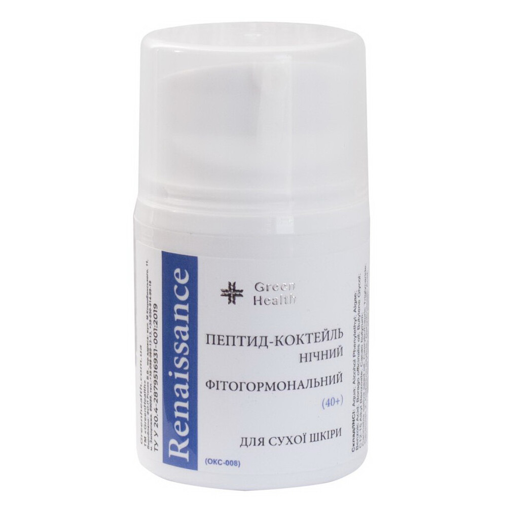 Пептид-коктейль нічний для сухої шкіри обличчя фітогормональний «Renaissance» (40+) Green Health ОКС-008, 30 мл