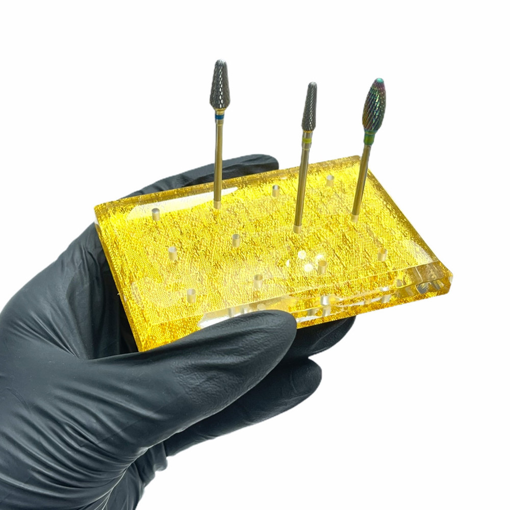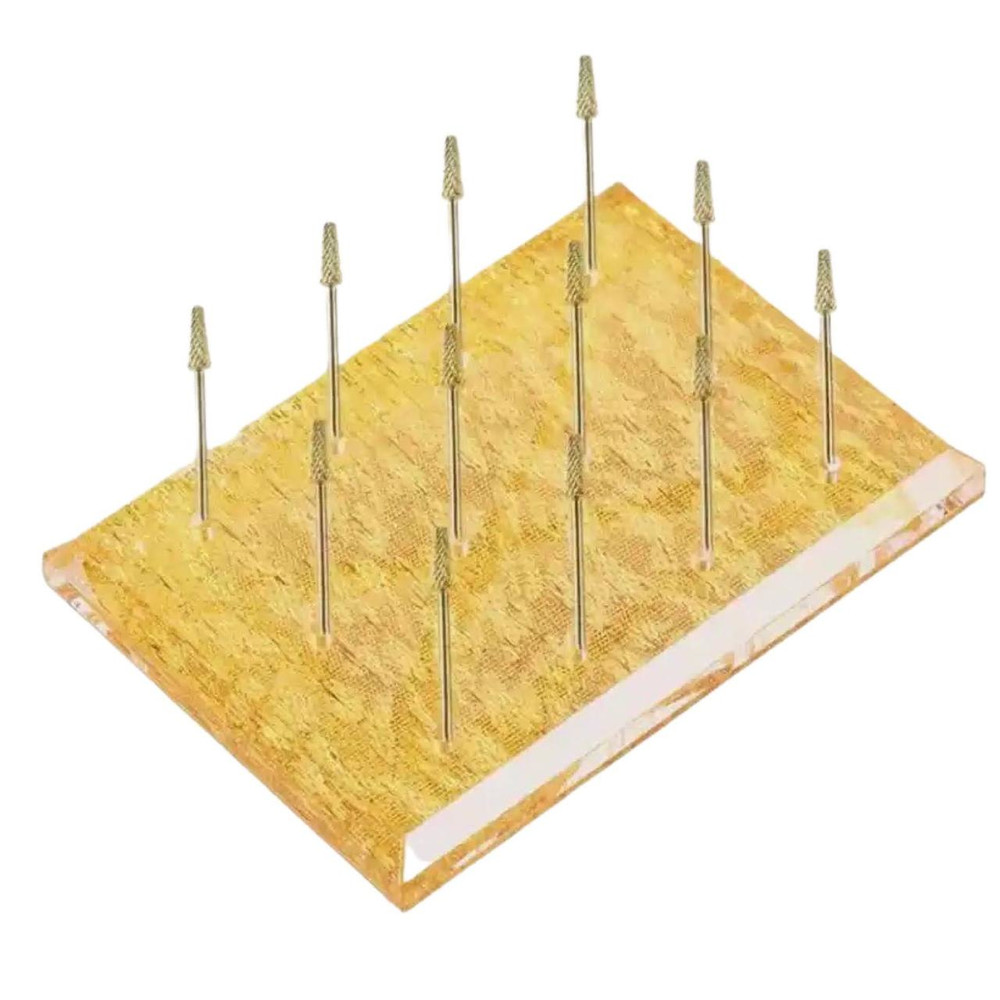 Купити Підставка прямокутна для фрезерних насадок на 12 осередків, Золото, ви зможете у нашому інтернет-магазині limonad з доставкою по всій Україні в тому числі і Київ, Дніпро, Одеса, Харків, Запоріжжя, Одеса, Львів та багато інших населених пунктів.