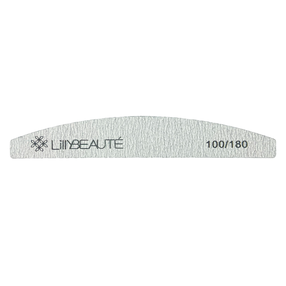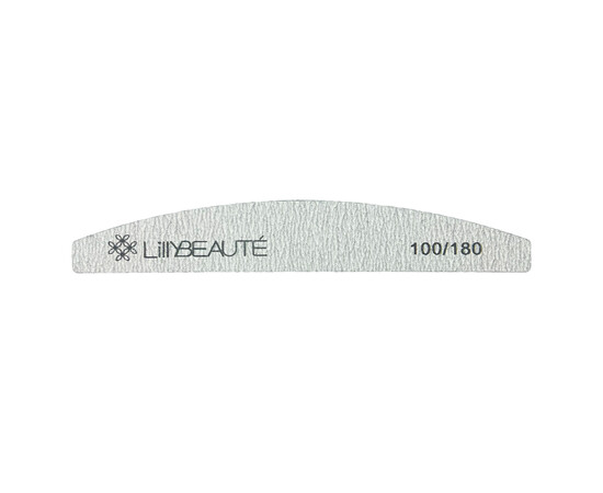 Тонка пилка Lilly Beaute 100/180 у формі півмісяця — зручна у використанні для опила натуральних та штучних нігтів. Має дві робочі поверхні: