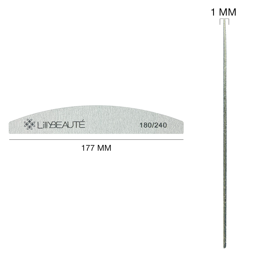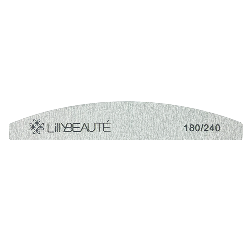 Тонка пилка для нігтів Lilly Beaute 180/240 у формі півмісяця — чудовий варіант для делікатної обробки натуральних нігтів.