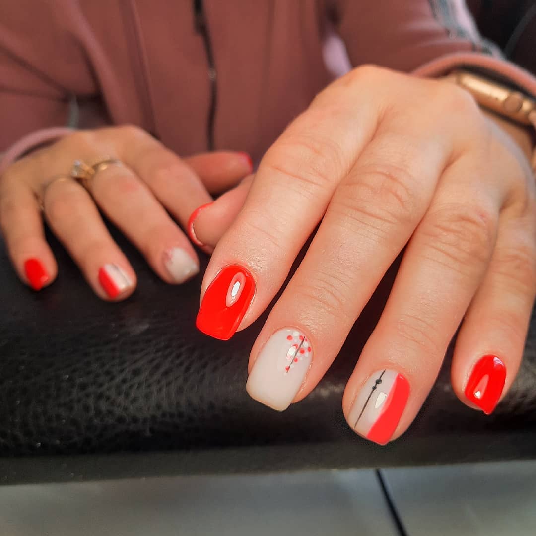 - Нанесіть кольоровий гель-лак на нігті, запечатайте вільний край, полімеризуйте кожен шар гель-лаку в УФ лампі 2 хвилини або в LED апараті 30 секунд. Якщо кольоровий гель-лак погано лягає на основу, зніміть липкий шар з базового покриття сухим гелевим пензлем або безворсовою серветкою, змоченою спеціальною рідиною для зняття липкого шару.