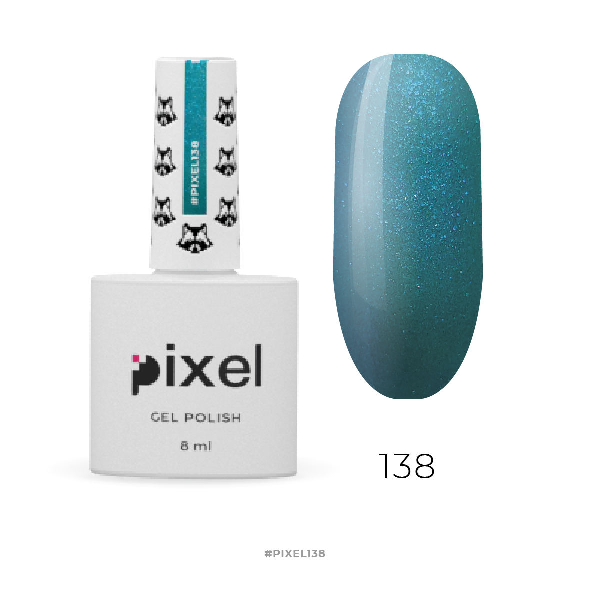 Гель-лак Pixel №138 (бірюзовий з мікроблиском), 8 мл