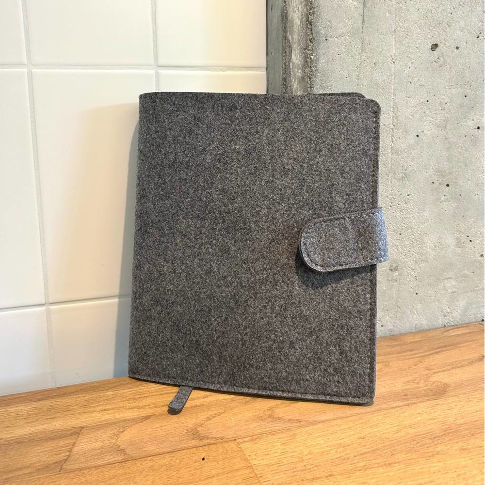 Блокнот оформлений в обкладинку із еко-фетру преміум якості з кільцевим механізмом.