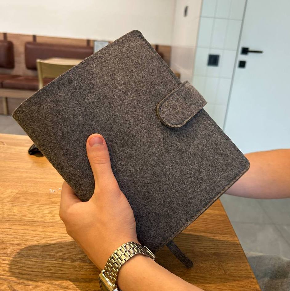 Блокнот оформлений в подвійну обкладинку з еко-фетру преміум якості з кільцевим механізмом.