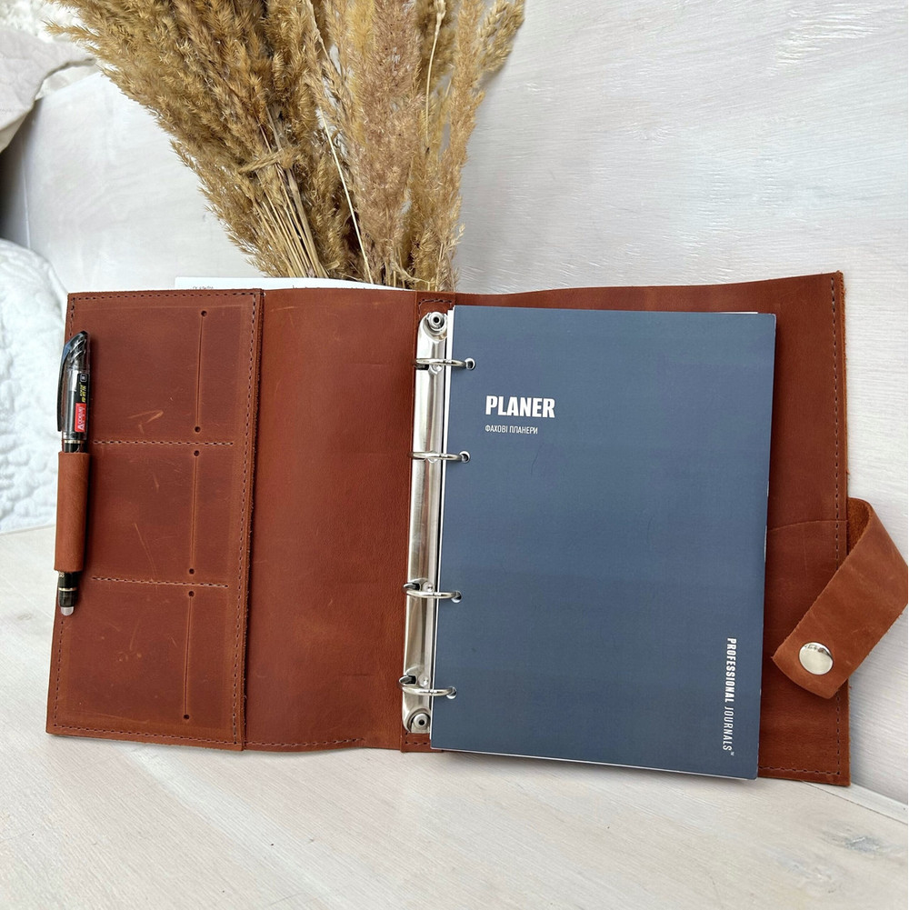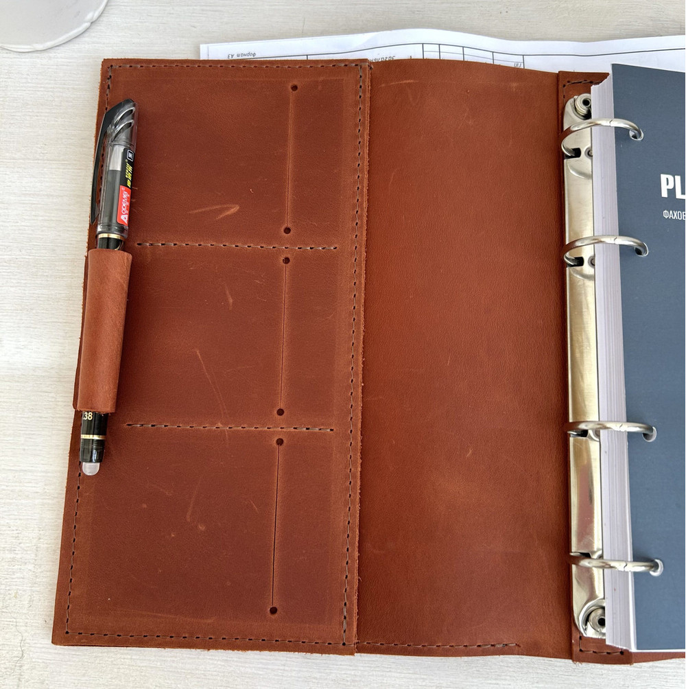 Блокнот оформлений в обкладинку із натуральної шкіри Crazy Horse з кільцевим механізмом.