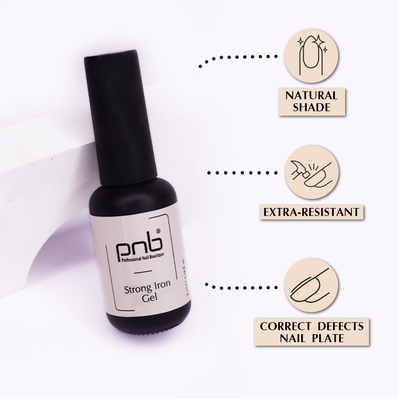 Інноваційний склад Strong Iron Gel PNB збагачено кремнієм, що забезпечує надзвичайну міцність та пружність покриття. А період його носіння нікого не залишить байдужим.