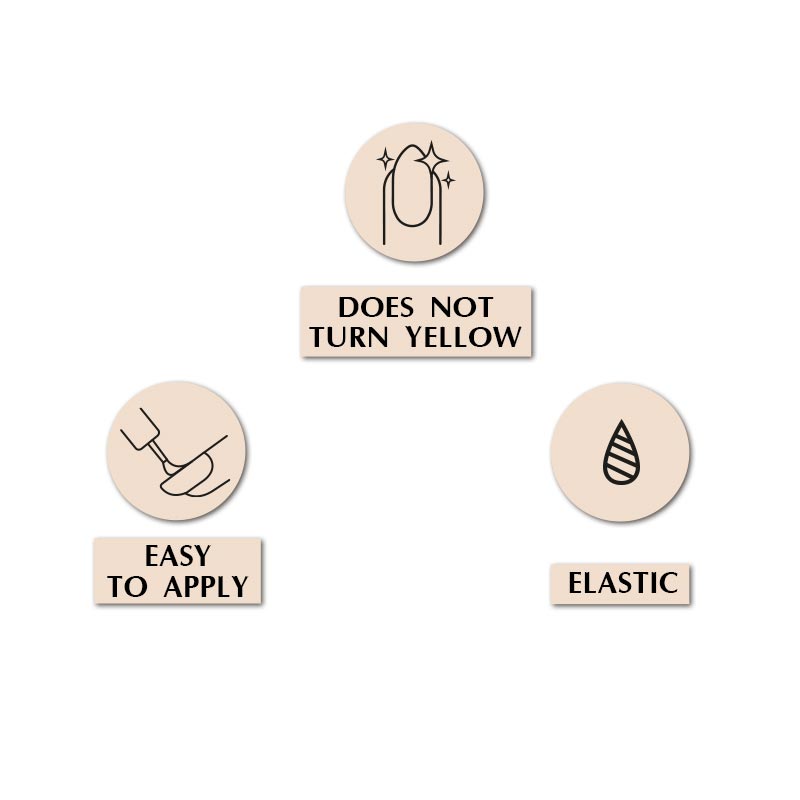 Завдяки своїй консистенції лягає на ніготь рівномірно, не створюючи додаткового занадто товстого шару.