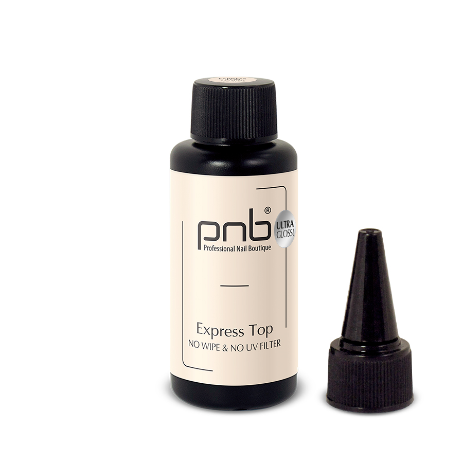 UV / LED Express Top No Wipe PNB, 50 мл - ідеальний засіб для завершення манікюру. Фінальний топ без липкого шару, з ефектом «мокрого блиску». Також можна використовувати як фінішне покриття для штучних нігтів.