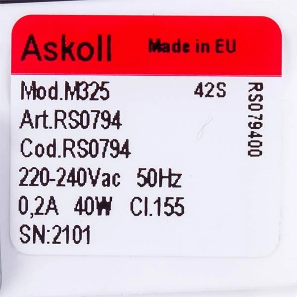 - Помпа (насос) для пральної машини 292090 RC0341 Askoll 40 Вт M325 (контакти спарені ззаду; на 3 клямки)