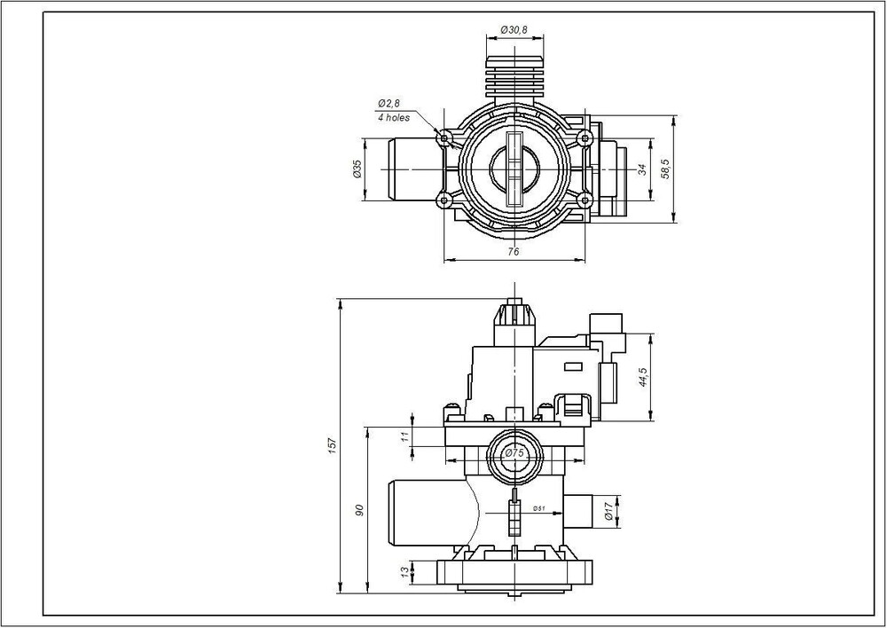 - Помпа (насос) для пральної машини Indesit C00282341 Plaset (у зборі) 34 Вт 56835 (контакти спарені ззаду)