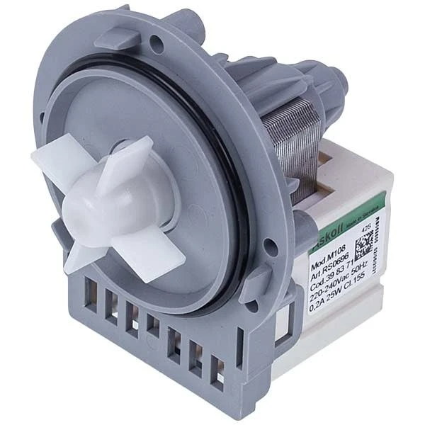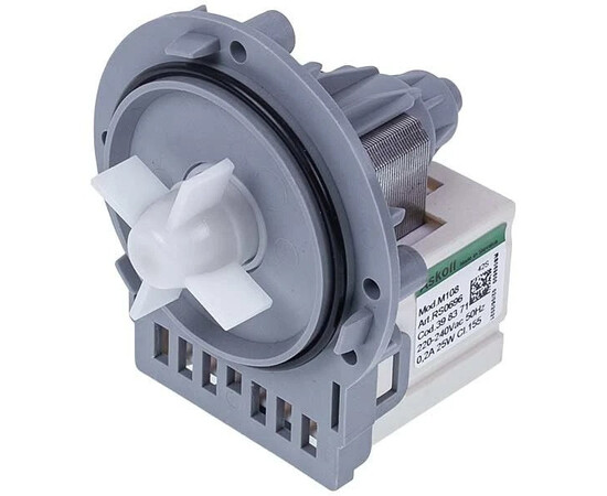 Помпа, або насос, для пральної машини — це ключовий компонент, який відповідає за відведення використаної води з бака машини. Під час прання, особливо на завершальних етапах, коли відбувається злив води після полоскання й віджимання, насос забезпечує ефективне видалення рідини через зливний шланг у каналізацію. Завдяки його роботі запобігається застою води всередині машини, що сприяє чистоті та гігієнічності прання, а також захищає внутрішні компоненти пристрою від надмірної вологи. Надійна робота помпи забезпечує безперебійну роботу циклу прання та дозволяє пральній машині виконувати всі задані програми коректно й безпечно.