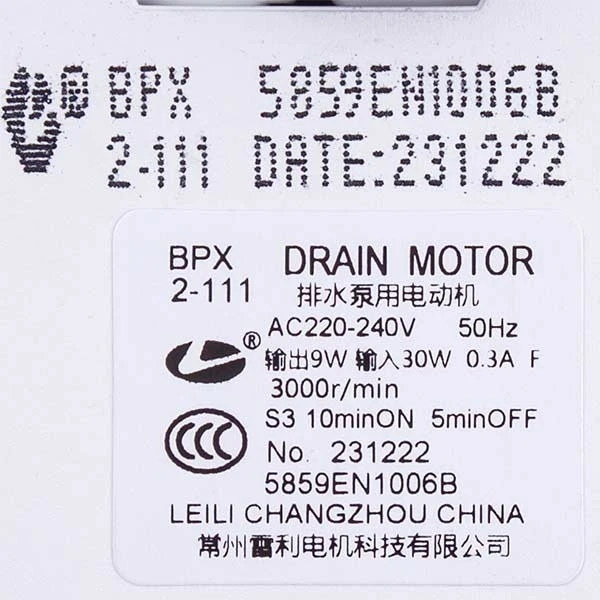 - Помпа (насос) для пральної машини LG 5859EN1006S LEILI (у зборі) 35 Вт BPX2-94L 0.35 A (контакти роздільні спереду)