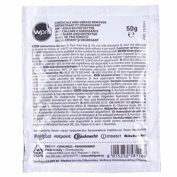 Купити Порошок 3 в 1 для чищення накипу для пральних та посудомийних машин Whirlpool 484000008800, ви зможете у нашому інтернет-магазині limonad з доставкою по всій Україні в тому числі і Київ, Дніпро, Одеса, Харків, Запоріжжя, Одеса, Львів та багато інших населених пунктів.