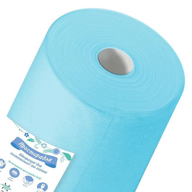 Doily Простирадла однор. (блакитний 0,6х100м) – одноразові простирадла від українського бренду. Незамінний витратний матеріал, який застосовується в медицині, косметології, SPA салонах, масажних кабінетах, лазнях-саунах, соляріях, салонах краси. Виріб з нетканого гіпоалергенного матеріалу – спанбонда, що не рветься, забезпечує хорошу циркуляцію повітря, не пропускає рідину, крему та олії, тим самим захищаючи поверхню.