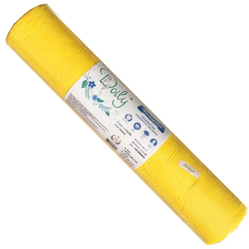 Doily Простирадла однор. (жовтий 0,6х100м) – одноразові простирадла від українського бренду. Незамінний витратний матеріал, який застосовується в медицині, косметології, SPA салонах, масажних кабінетах, лазнях-саунах, соляріях, салонах краси. Виріб з нетканого гіпоалергенного матеріалу – спанбонда, що не рветься, забезпечує хорошу циркуляцію повітря, не пропускає рідину, крему та олії, тим самим захищаючи поверхню.