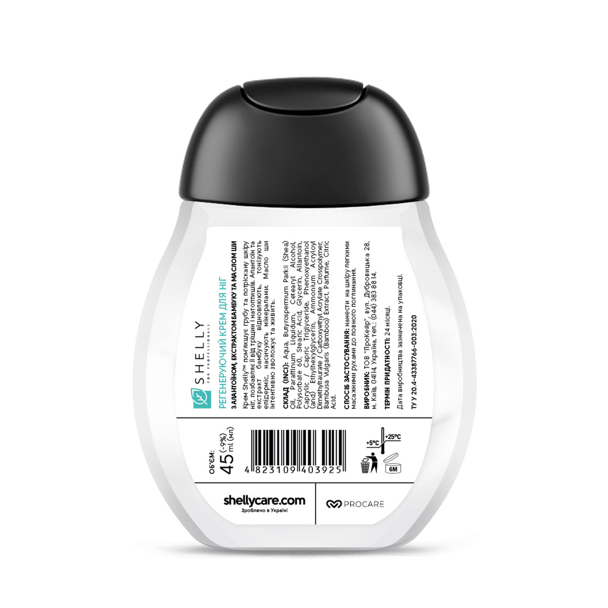 Регенеруючий крем для ніг Shelly 45 мл з алантоїном, екстрактом бамбука і маслом ши