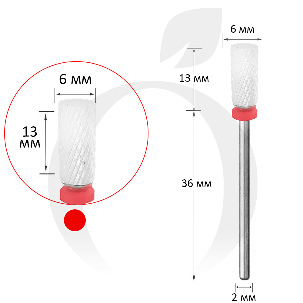 Фреза керамическая цилиндр красная 6 мм, рабочая часть 13 мм